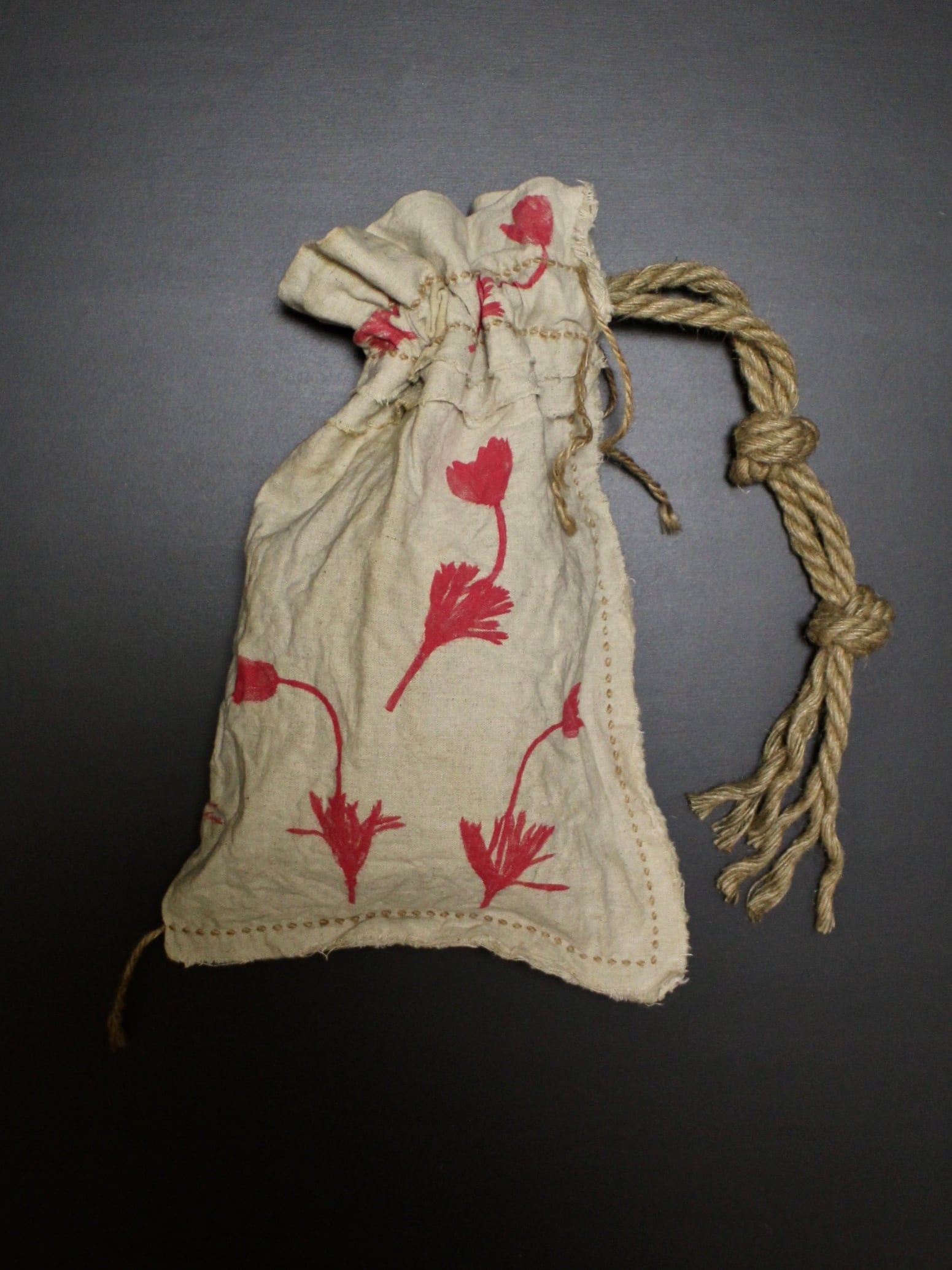 Pressed flower pouch bag"Nodding anemone" Poppy red